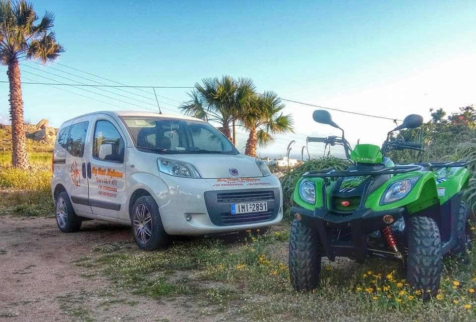 When visiting Greece, explore vibrant Mykonos island in comfort and safety. We offer a wide variety of choices in vehicles from our fleet, at competitive prices. Having more than 35 years of unparalleled experience in transportation rental services in Mykonos, you can rent from our cars, bikes (scooters), ATVs (quads), Buggys and mini-buses (with drivers), depending on your needs. Furthermore, we can offer you free delivery and pick up service, baby and toddler car seats, extra drivers, unlimited mileage and island maps to name a few. Rent the vehicle of your choice, by contacting us, and make the most of your stay in Mykonos, exploring its impressive landmarks and exotic beaches.
